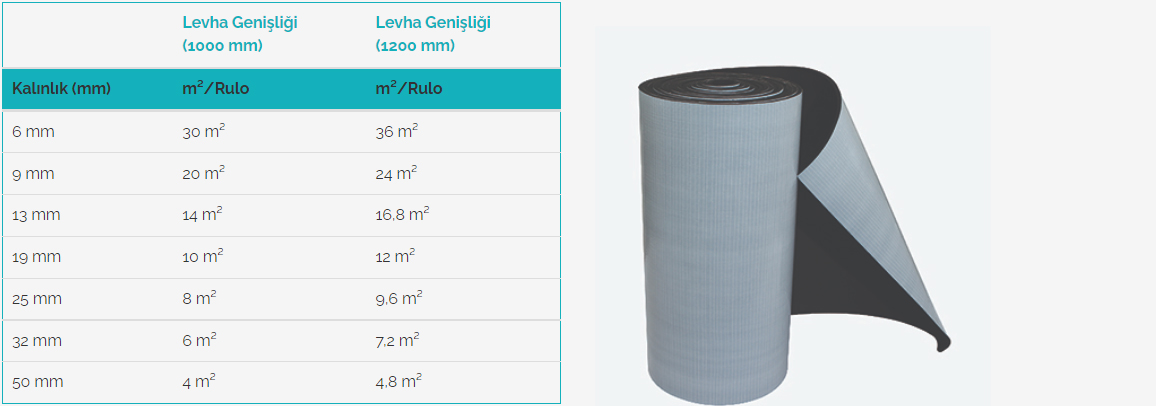 Kanal yalıtımı için en uygun ebat olan; 100cm ve 120cm levha genişliğinde, 7 farklı kalınlık aralığında üretim.