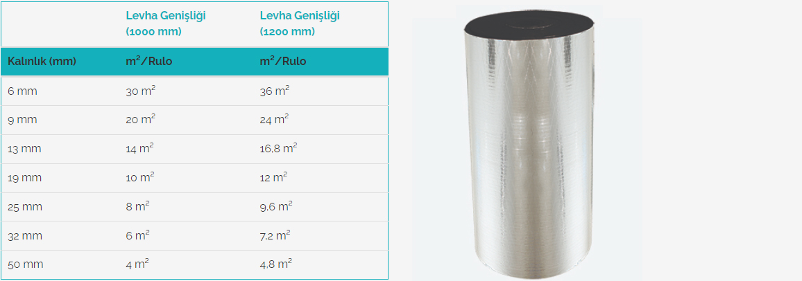 Kanal yalıtımı için en uygun ebat olan ; 100cm ve 120cm levha genişliğinde, 7 farklı kalınlık aralığında üretim; Elastik yapısı sayesinde kanallarda oluşan titreşimi sönümlemeye yardımcı olur.